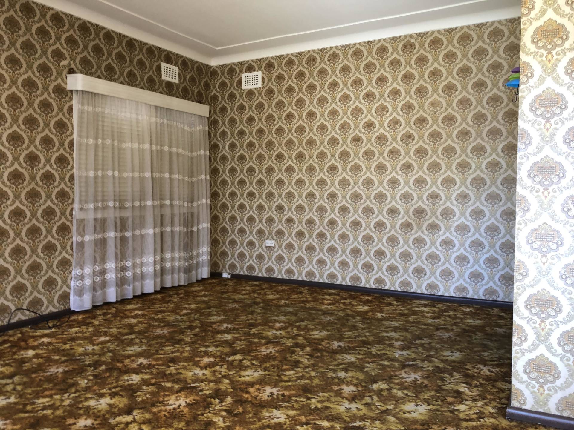 Three large bedrooms with carpet throughout, main bathroom with bathtub and shower, double spaced carport, spacious living room, seperate dining area, large kitchen, Huge backyard, furnished with Venetian blinds and curtains.