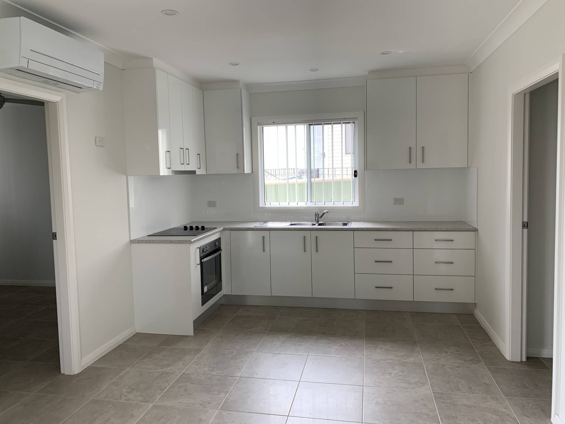 • Large size kitchen with electric cooktop with plenty of cupboard space